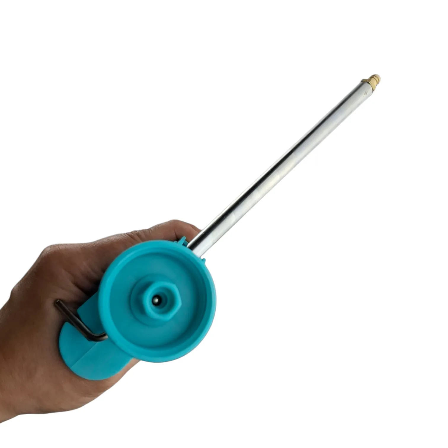 Цельнометаллический регулировочный винт оборудован удобной ручкой, которая позволяет регулировать напор и наносить пену аккуратно и точно.