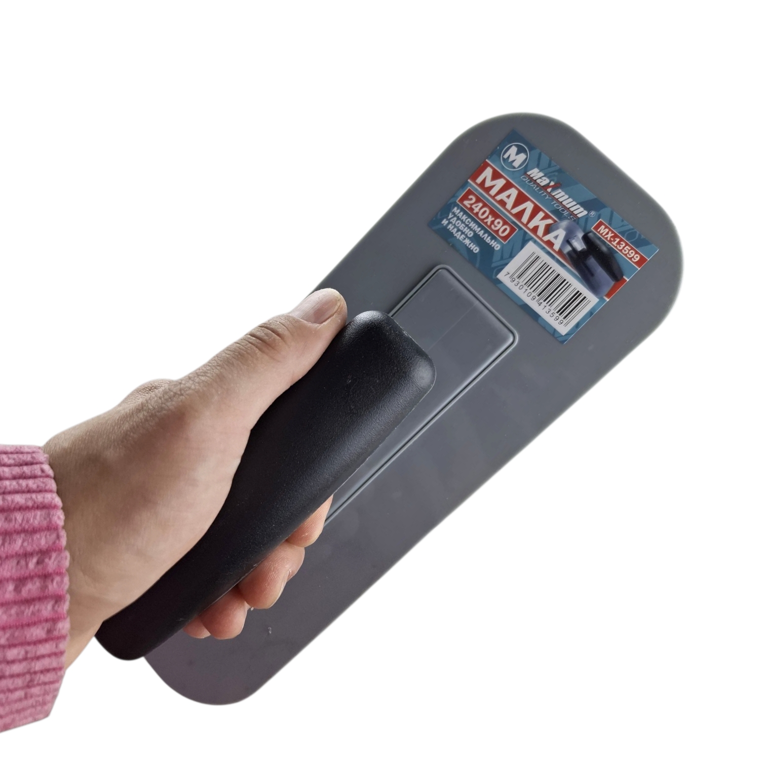 Гладилка пластиковая MAXIMUM MX 13599 с ручкой – идеальный инструмент для выравнивания штукатурки, шпаклевки и наливных полов. Гладилка идеально подходит для финишного выравнивания гипсовой и цементной штукатурки, гипсовой шпаклевки, создания гладкой поверхности под покраску или поклейку обоев.