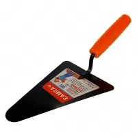 На гибкое стальное полотно кельмы 200 мм нанесено специальное антикоррозийное покрытие. Шейка надежно соединяет ручку и платформу, к которой приварена. Пластиковая рукоять с рельефной поверхностью не скользит в руке и легко моется.