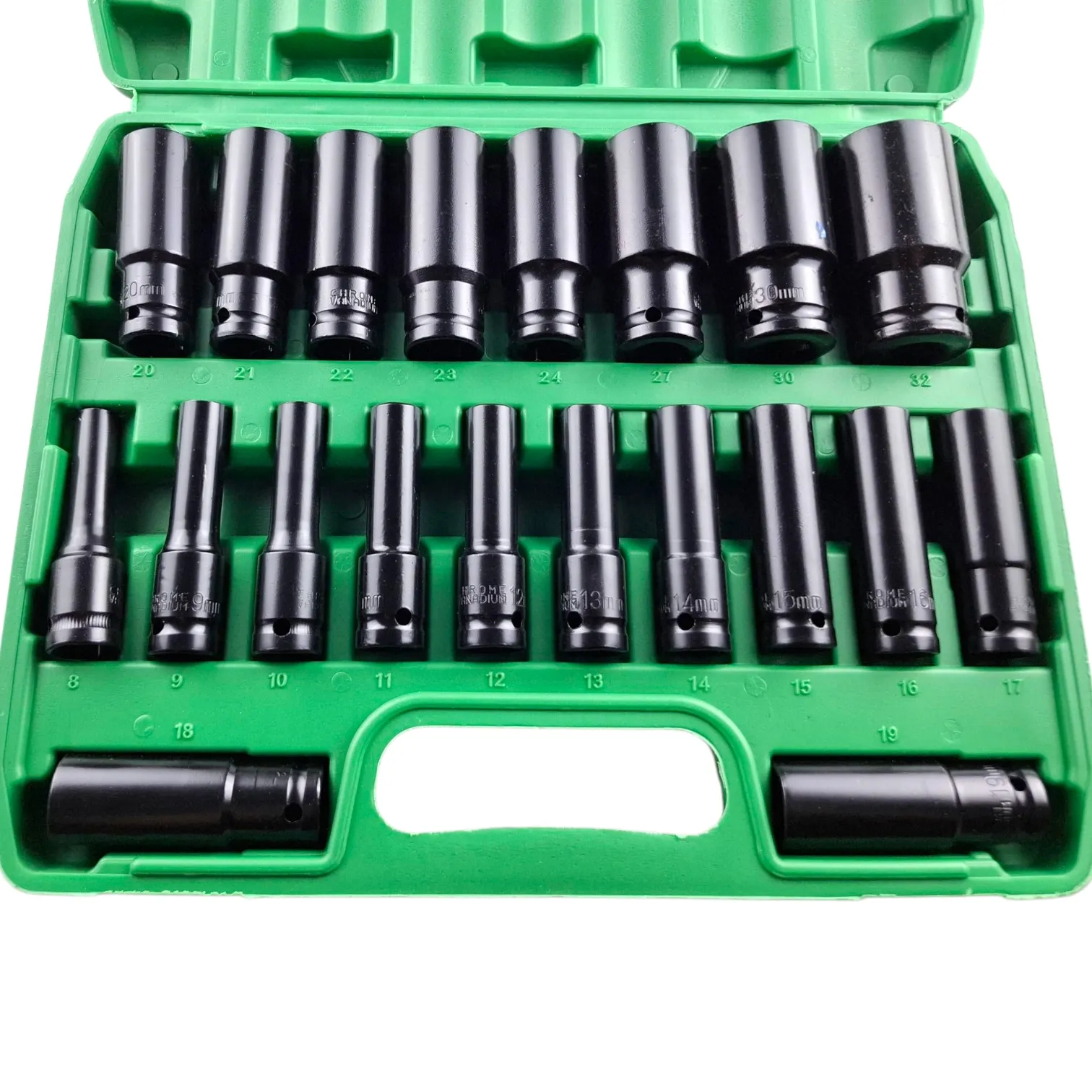 Набор торцевых ударных глубоких головок 20 предметов предназначен для гайковертов. Благодаря своей удлиненной конструкции, головки длиной 80 мм легко достигают труднодоступных мест, что значительно облегчает проведение работ. Ударные головки выполнены из закаленной стали для особой прочности и твердости, а также защищены специальным антикоррозийным покрытием. Такой качественный набор инструментов прослужит Вам долгое время. Крепкий и надежный профиль головок для гайковерта успешно справляется с крепежом. Равномерное распределение усилия крутящего момента по всей внешней площади гайки. Улучшенное сцепление головок с гранями и стенками крепежа. Удобный кейс из ABS пластика имеет специальную нишу под каждую головку.