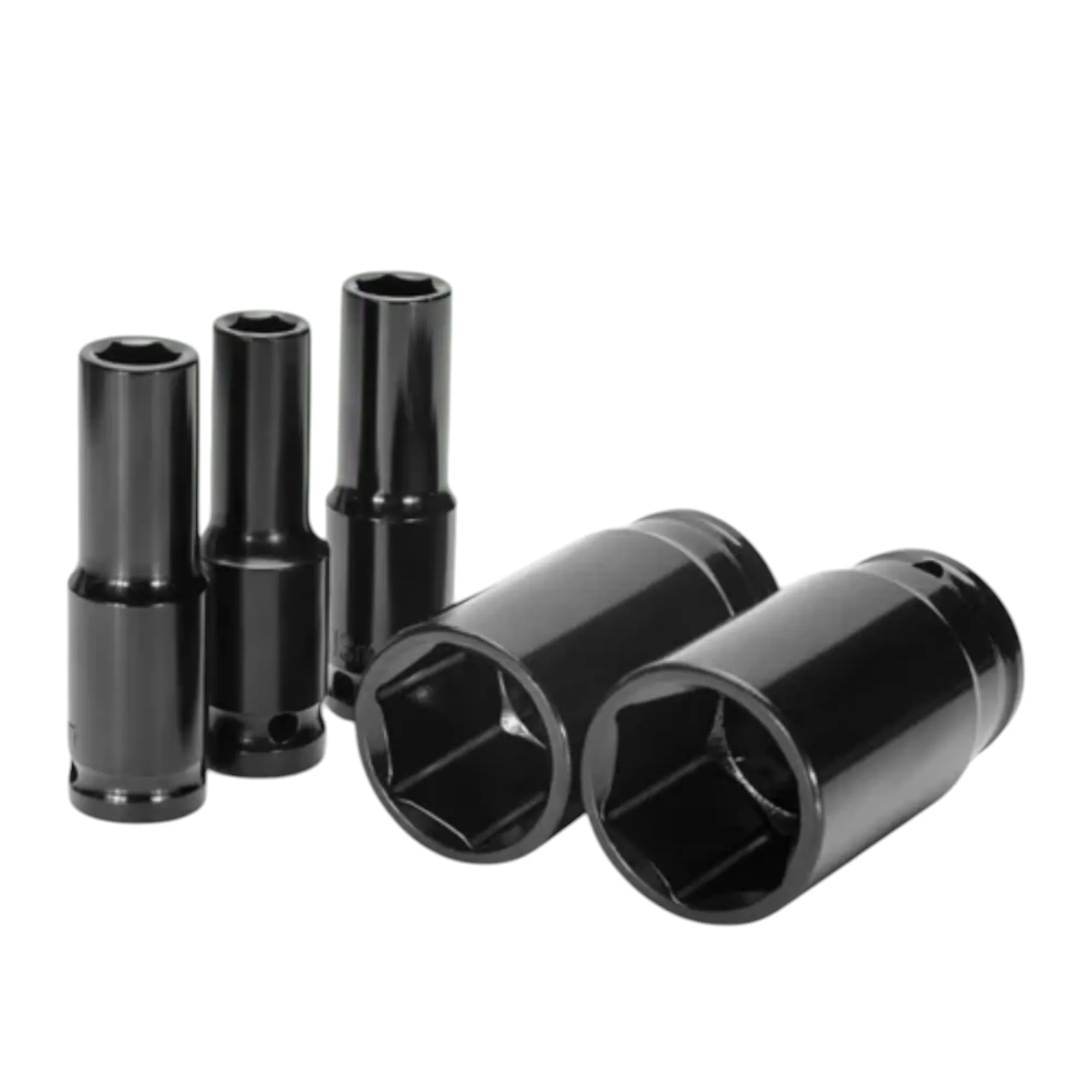Набор торцевых ударных удлиненных головок предназначен для ударных гайковертов. Применяется для работы с крепежом. Головки изготовлены из хром-молибденовой стали с фосфатированным покрытием. Крепкий и надежный профиль головок для гайковерта успешно справляется с крепежом. Равномерное распределение усилия крутящего момента по всей внешней площади гайки. Улучшенное сцепление головок с гранями и стенками крепежа. Удобный кейс из ABS пластика имеет специальную нишу под каждую головку.
