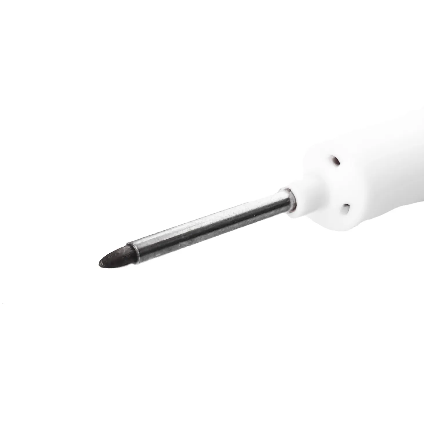 Маркер для отверстий и труднодоступных мест имеет толщину стрежня 0,7-1 мм. Используется для разметки отверстий при сверлении, а также различных столярных работах. Алюминиевый прочный корпус, с нанесенной линейкой для быстрого измерения метизов. Тонкий металлический стержень длиной 30 мм заправляется чернилами на водной основе, которые прекрасно пишут на любых поверхностях: на стекле, резине, пластике, дереве и металле. Длинный сменный наконечник устойчив к деформации. Маркер выполнен в различных цветах.