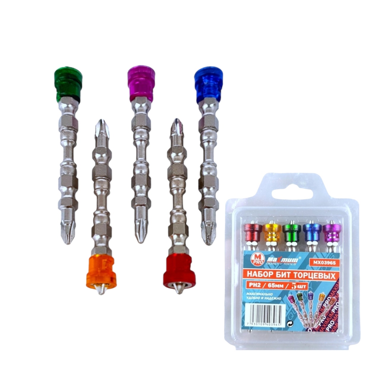 Набор бит для гипсокартона PH2, 65 мм, 5 штук, "MAXIMUM" с ограничителем подходит как для ручного, так и для механизированного инструмента. Насадки биты изготовлены из высококачественной стали S2, которая гарантирует длительный срок использования и износоустойчивость.