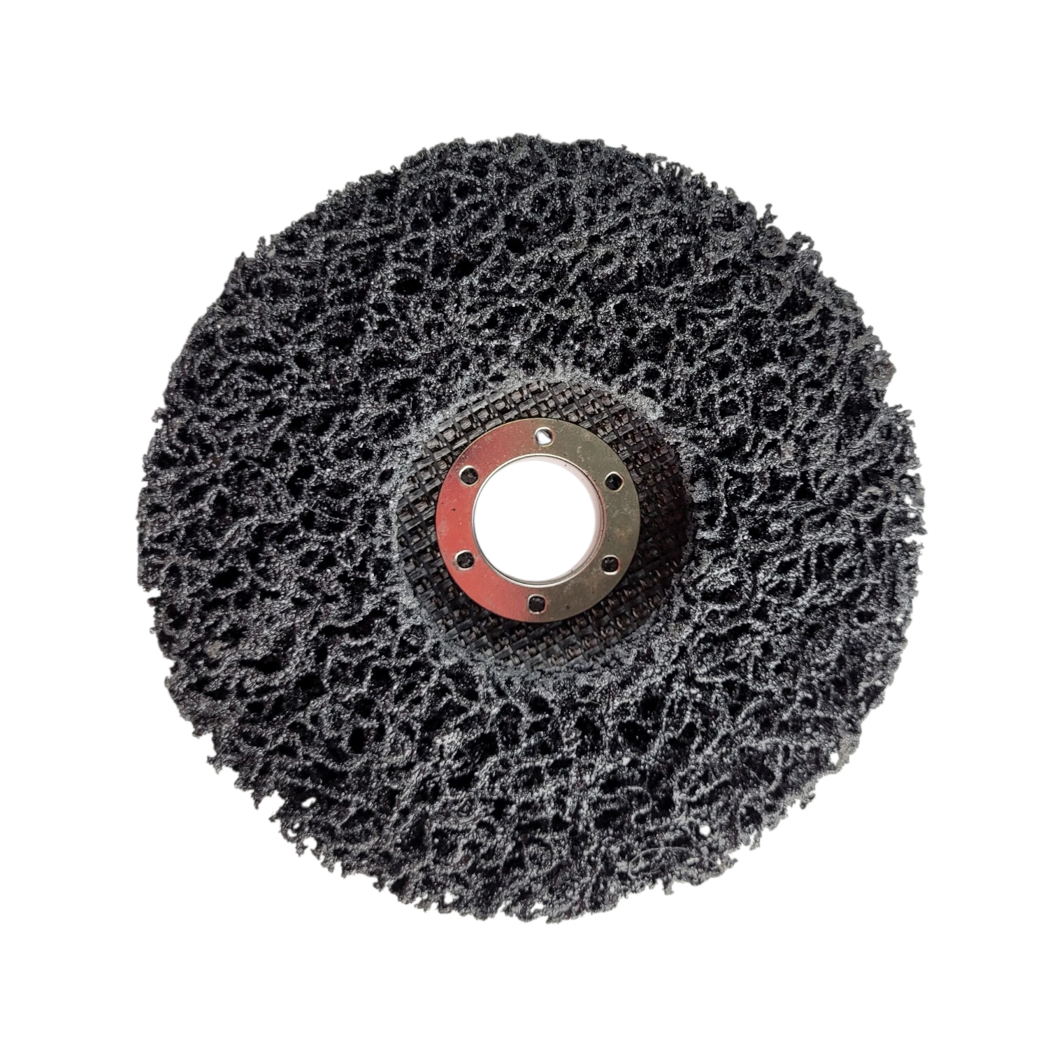 Черный полимерный зачистной круг применяется для подготовки поверхности под покраску, удаления старой краски и ржавчины с поверхностей металла, авто, дерева, пластмассы.