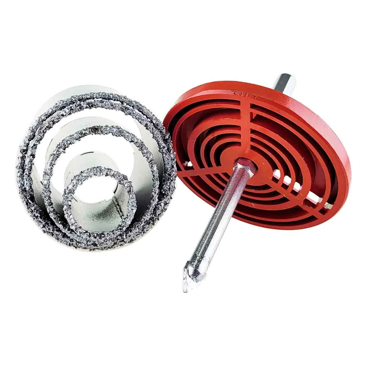 Набор коронок по керамограниту от BOLIAN с вольфрамовым напылением применяется для вырезания отверстий в кафеле, мягком кирпиче, пористом бетоне и т.п. Используется в безударном режиме. Острое центрирующее сверло 10 мм позволяет просверлить отверстие точно в нужном месте. Корпус выполнен из нержавеющей высокопрочной углеродистой стали.