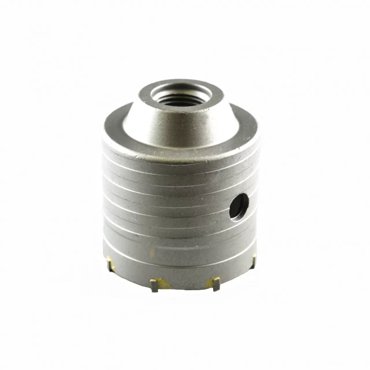 Коронка 60 мм предназначена для работы по основаниям: бетон, известняк, камень, кирпич, клинкер. Используется на ударных дрелях и перфораторах.