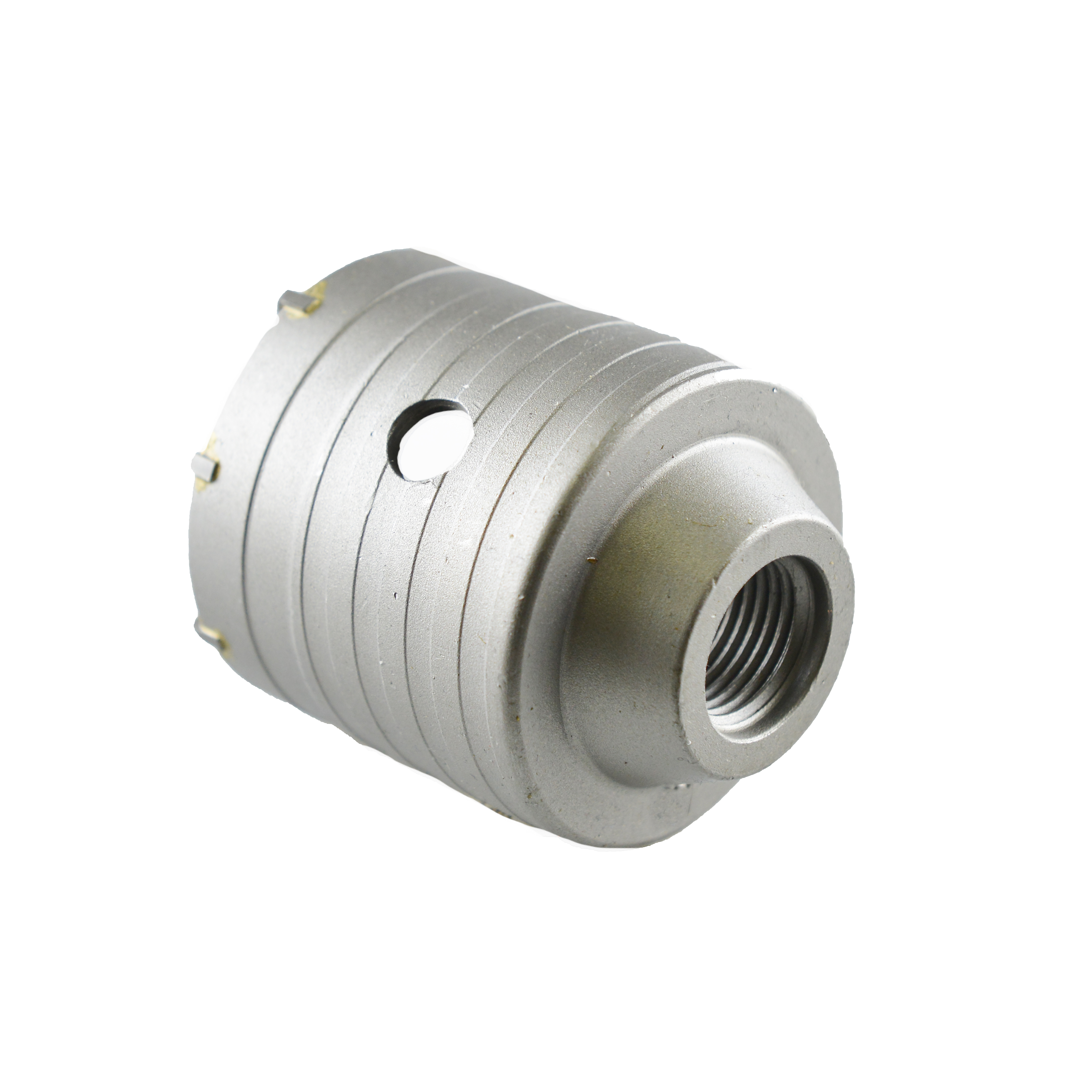 Большое количество вариантов комбинаций с данной оснасткой можно производить благодаря особым резьбовым соединениям. Крепление коронки - внутренний конус М 22 позволяет осуществлять быструю сборку благодаря удобной резьбе. Корпус коронки под бетон 70 мм имеет внешние канавки, которые способствуют увеличению срока службы и уменьшению трения.