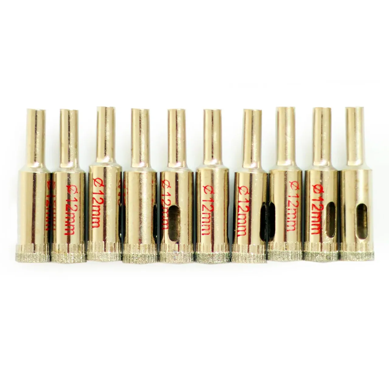 Сверло по кафелю 12 мм имеет кольцевую конструкцию с алмазным напылением по краю. С помощью алмазной коронки 12 мм получается точное и аккуратное отверстие в керамике, кафеле, керамограните, граните, мраморе, стекле, бетоне, кирпиче. Отверстие в боковой части корпуса обеспечивает эффективное охлаждение и удаление остатков.