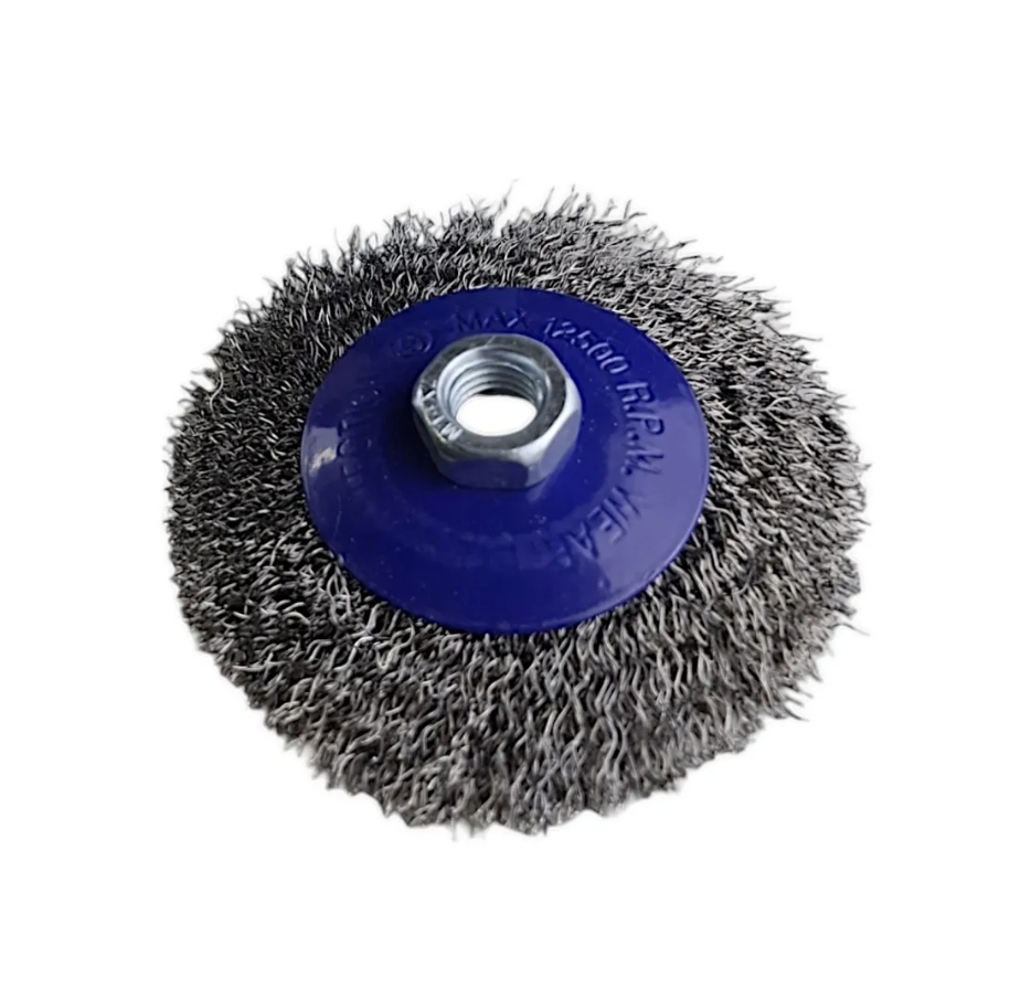 Качественная чашечная щетка с волнистой щетиной 4" оптимальная для деликатной, но эффективной очистки металла от ржавчины, краски и загрязнений. Она менее агрессивна, чем щетки с прямой щетиной, и подходит для подготовки поверхностей под покраску, где важно не оставить глубоких царапин.