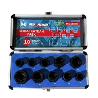 Комплект из 10 экстракторов (ввертышей) в виде торцевых головок от "Maximum" предназначен для решения одной из самых неприятных проблем — выкручивания сломанных болтов, шпилек и сорванных гаек. Инструмент изготовлен из высококачественной легированной стали хром-молибден (Cr-Mo), что обеспечивает ему высокую прочность, износостойкость и способность работать с твердыми металлами.